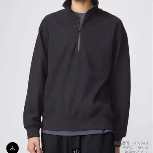 하프 지퍼 스웨트 셔츠 다크 그레이 S