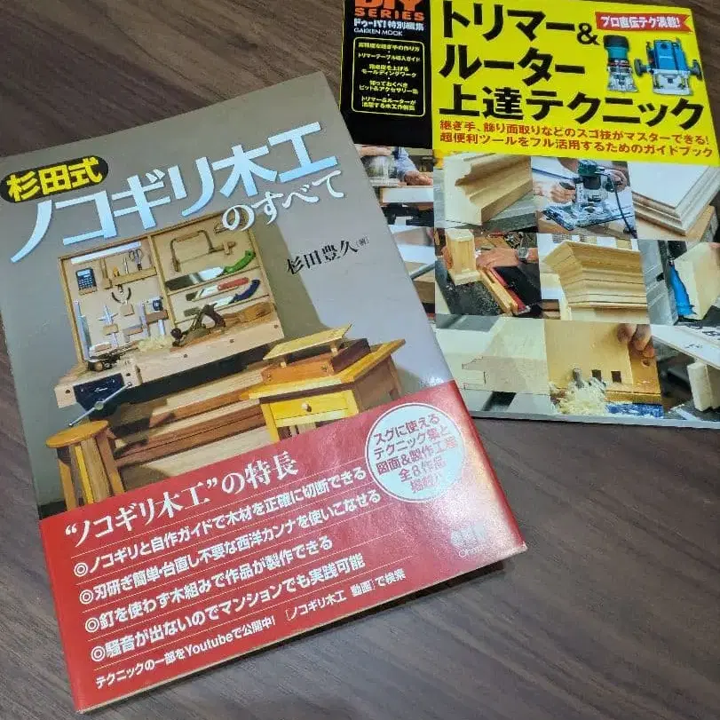 [ DIY SERIES ] 트리머 & 라우터 숙달 테크닉 정가 1800엔+세금 상태 좋고 깨끗합니다. 스기타식 톱 목공의 모든 것 정가 3200엔+세금 오래된 책이라 탄 것처럼 보이는 부분이 뒷면에 있습니다. 2권 세트 판매입니다. 주인이 가지고 있던 책입니다.