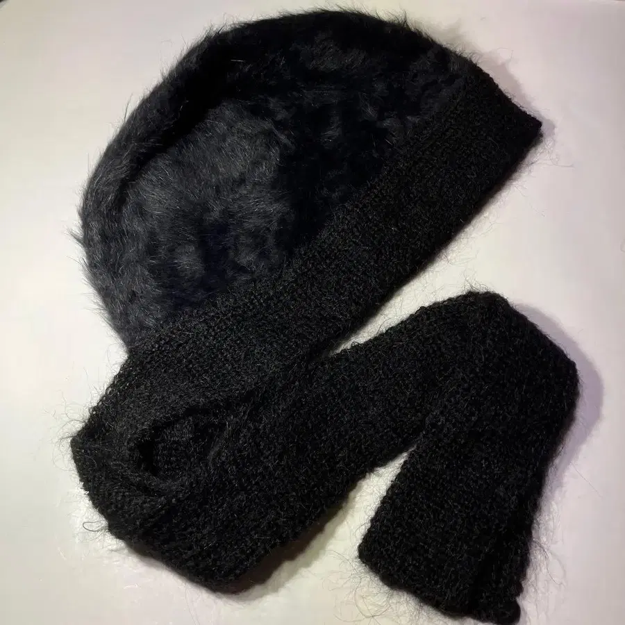 [ 미사용 새상품 ] Delphine 모헤어 니트 모자 리본 포함 블랙