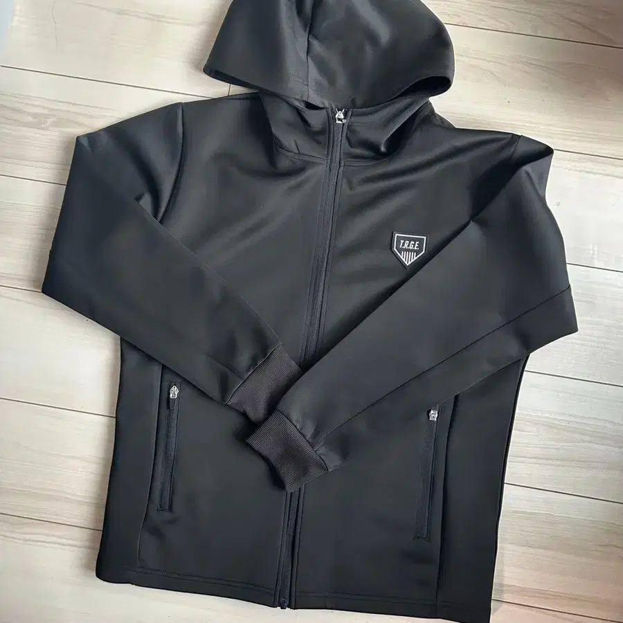 블랙 후드 부착 나일론 자켓