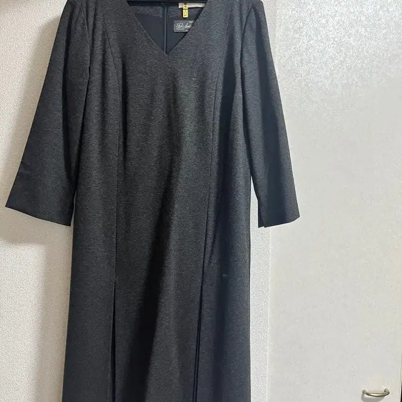 스트레치성이 있는 다크 그레이 V넥 7부 소매 원피스, A라인 디자인으로 착용감 우수. - 색상: 다크 그레이 - 디자인: V넥, 7부 소매 - 스타일: A라인 - 백 디자인: 지퍼 있음 - 소재: 스트레치성 있는 원단 방문해 주셔서 감사합니다. 조금 격식 있는 모임이나, 친구 모임, 사은회 등에 딱 맞는 원피스입니다. 목 부분은 너무 파이지 않고 깔끔한 인상의 V넥이며, 기장도 무릎이 보이거나 가려질 정도의 차분한 느낌으로 연출할 수 있는 원피스입니다! 사이즈 - M
