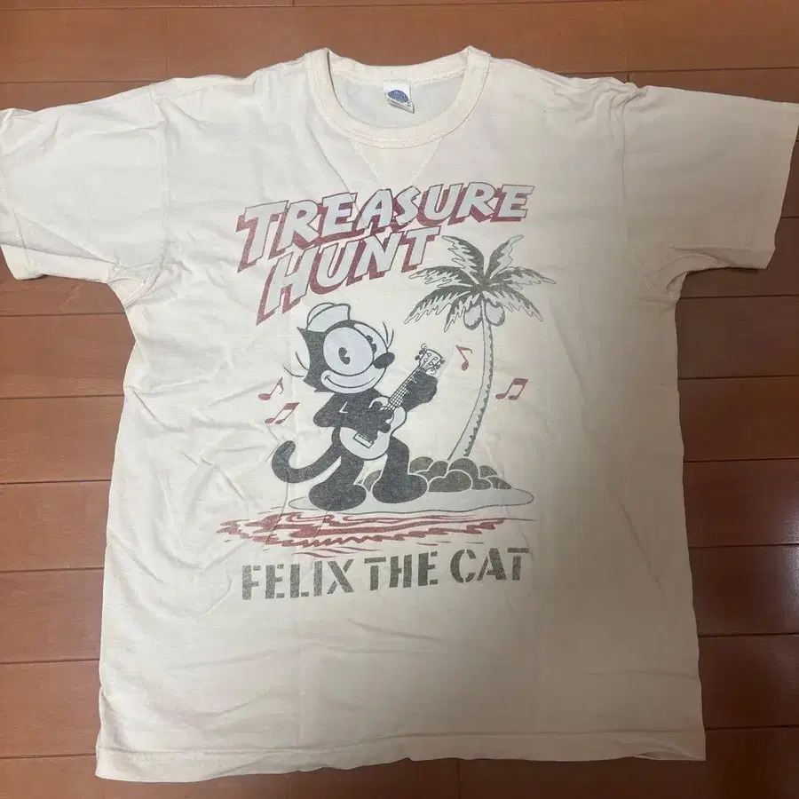FELIX THE CAT의 유니크한 디자인이 특징인 T셔츠. 구제 의류점에서 8000엔에 구매했습니다. 3회 정도 착용했습니다. - 디자인: TREASURE HUNT와 FELIX THE CAT의 그래픽 - 사이즈: MEDIUM - 백 디자인: 작은 FELIX THE CAT 로고 - 컬러: 크림색 방문해 주셔서 감사합니다. 사이즈 - M