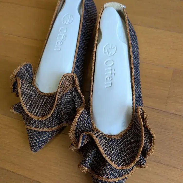 미사용 새상품 Offen 프릴 플랫슈즈 네이비 40