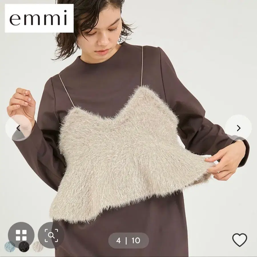 부드러운 샤기 실에 긴 라메를 엮어 화려한 뷔스티에.