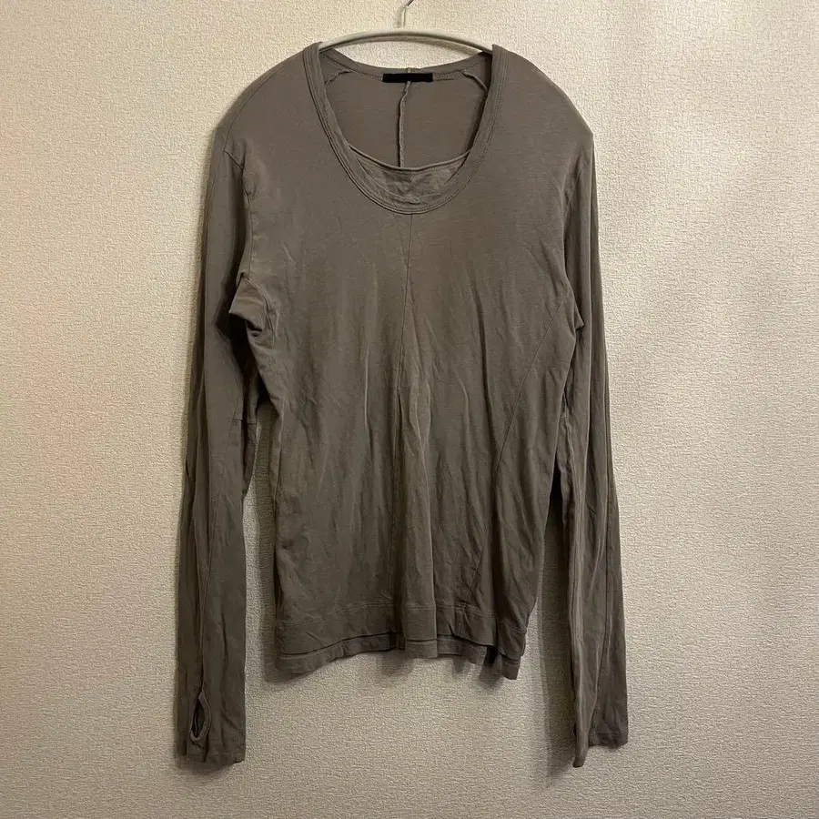 이것은 바리시안의 이너 티셔츠입니다. 더블 레이어로 한 장으로 두 장을 입은 듯한 느낌을 줍니다. 썸홀이 있어 자켓 안에 입고 소매만 내놓는 등 테크니컬한 활용도 가능할 것 같습니다. 사이즈 2이지만 상당히 타이트하므로 슬림하신 분들께 특히 추천합니다.