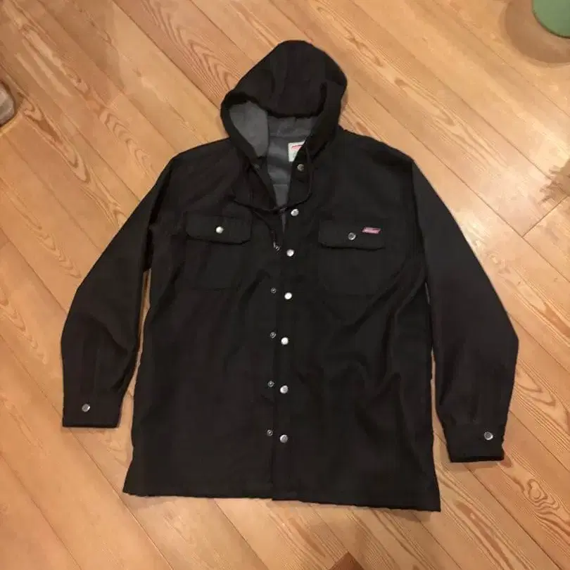 후드 부착 블랙 자켓, 단추식과 포켓 부착으로 실용적입니다. - 브랜드: Dickies - 사이즈: L/G (42-44) - 색상: 블랙 - 특징: 후드 부착, 단추식, 포켓 부착 방문해 주셔서 감사합니다. 사이즈 - L