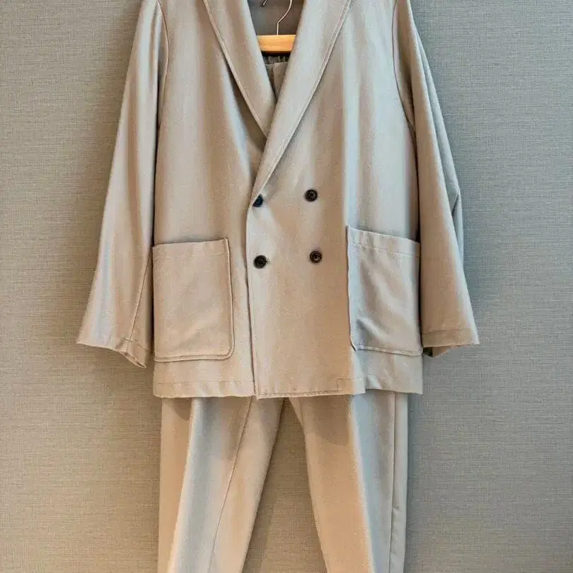 부드러운 베이지 색상의 더블 브레스트 캐주얼 수트, 프론트 포켓 부착. - 색상: 베이지 - 스타일: 더블 브레스트 - 포켓: 프론트 포켓 있음 - 팬츠: 셋업 - 소재: 부드러운 원단 - 디자인: 심플한 디자인 방문해 주셔서 감사합니다. 사이즈 - M 색상 - 그린 계열 패턴 - 무지 타입 - 더블 계절 - 올 시즌 얼룩, 찢김, 냄새 등 - 없음