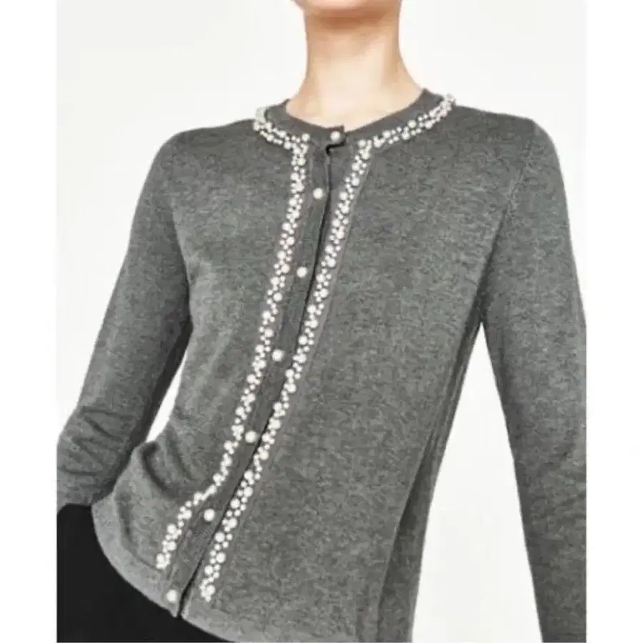 ZARA 펄 장식 그레이 긴팔 가디건 M