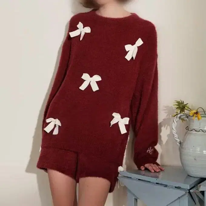 트렌드 모티브인 리본을 입체적으로 흩뿌려 캐치한 존재감의 풀오버입니다.