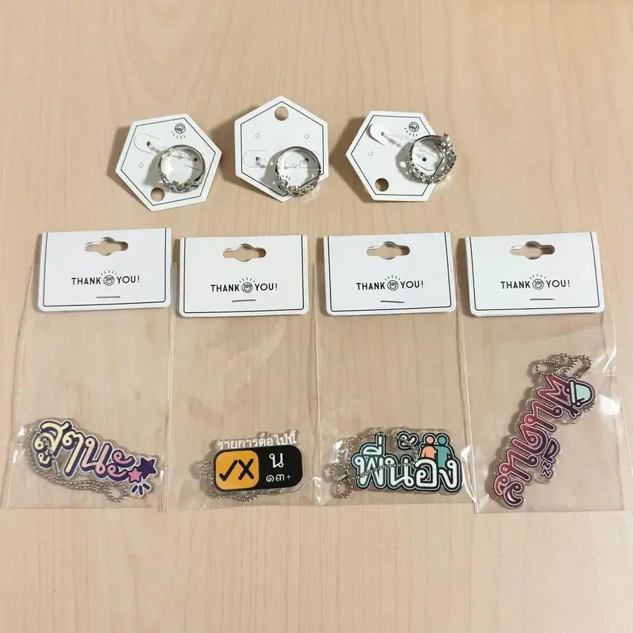땡큐마트 태국어 반지 3종류 태국어 키링 4종류 미개봉 새상품입니다. 구매 후 어두운 곳에 보관했습니다. 자택 보관이므로 이해하시는 분만 구매 부탁드립니다. 에어캡 등으로 포장하여 파손되지 않도록 발송하겠습니다. 즉시 구매 가능 ⭕️