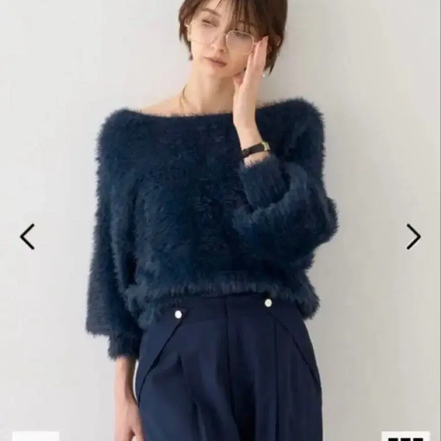 복슬복슬한 털이 있는 니트는 은은하게 라메사가 짜여져 화려한 인상을 줍니다.