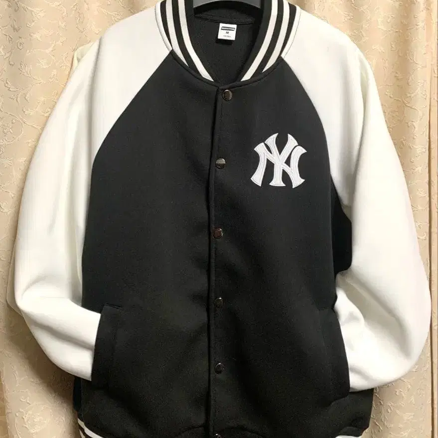 자켓 블랙 & 화이트 로고 와펜 부착 L 사이즈 와펜은 원하시는 위치에 부착 가능합니다. #바시티 자켓 #자켓 #블루종 #양키스