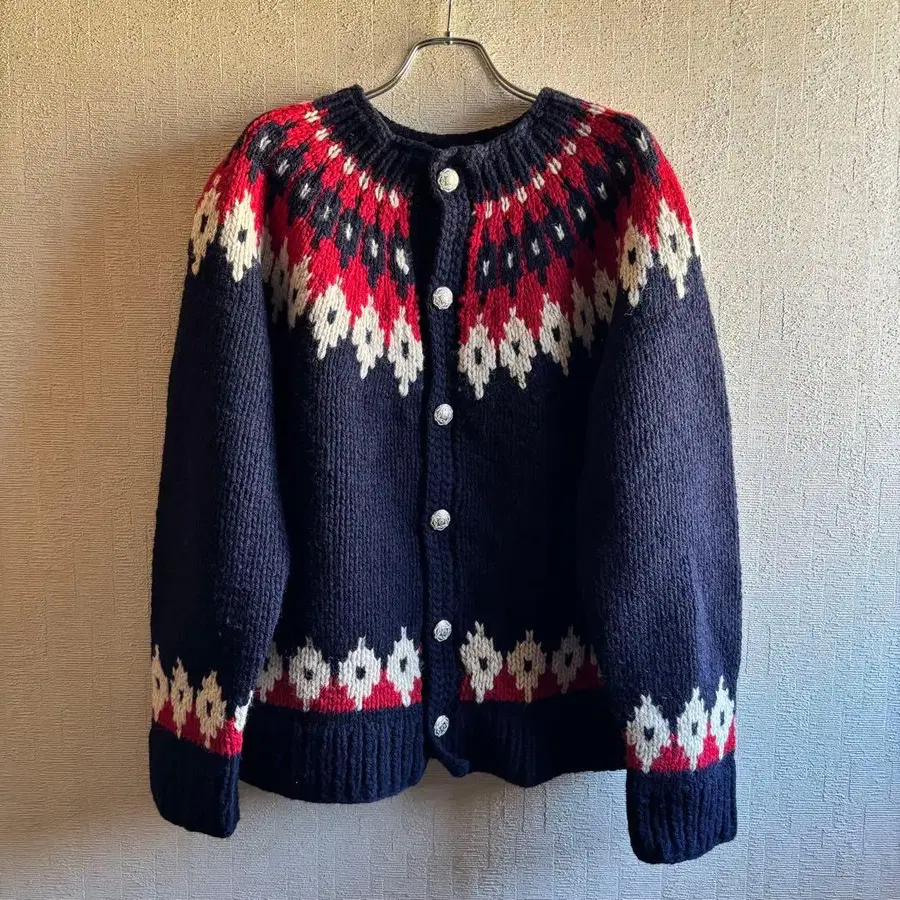 • 노르딕 무늬 코위찬 니트 집업 가디건 두꺼운 원단 구제 의류 M