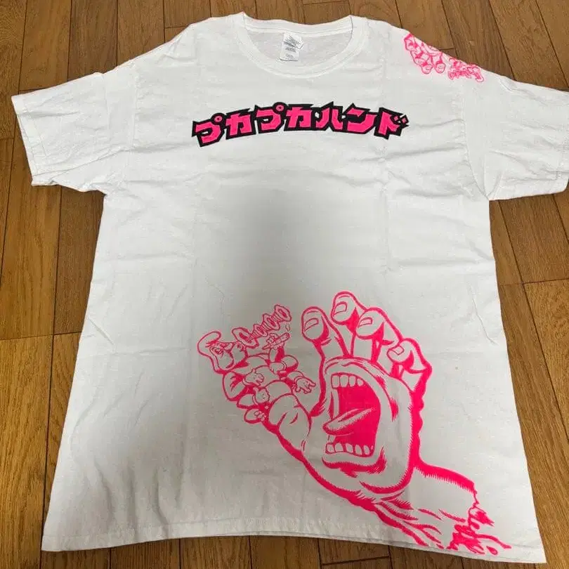 운코링 씨가 직접 그린 T셔츠. 푸카푸카 핸드, 다 함께 푸카푸카해요. 길단 L 사이즈