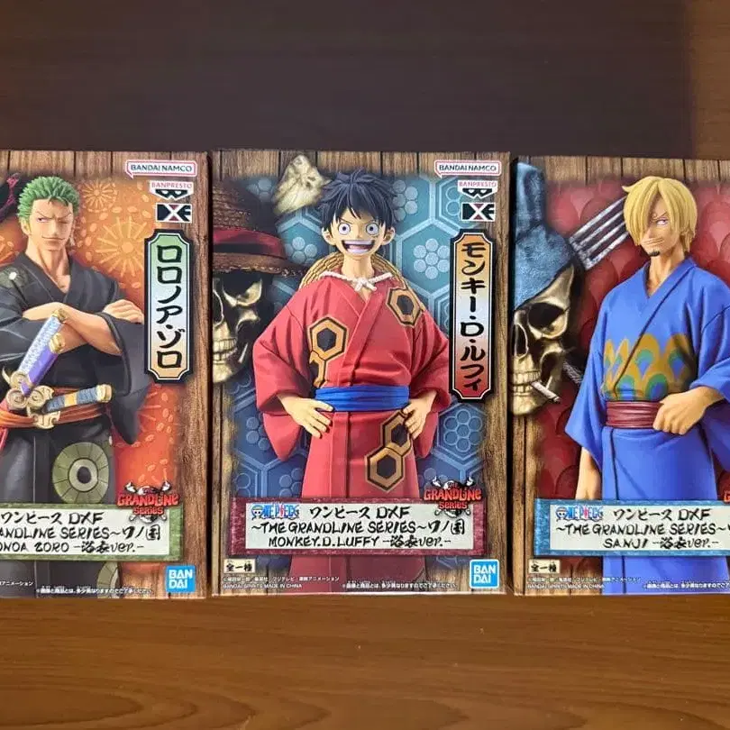 원피스 피규어 3개 세트, 섬세한 조형과 채색이 특징. - 캐릭터: 로로노아 조로 - 캐릭터: 몽키 D 루피 - 캐릭터: 상디 - 시리즈: THE GRANDLINE dxf 유카타 - 제조사: 반다이 방문해 주셔서 감사합니다.