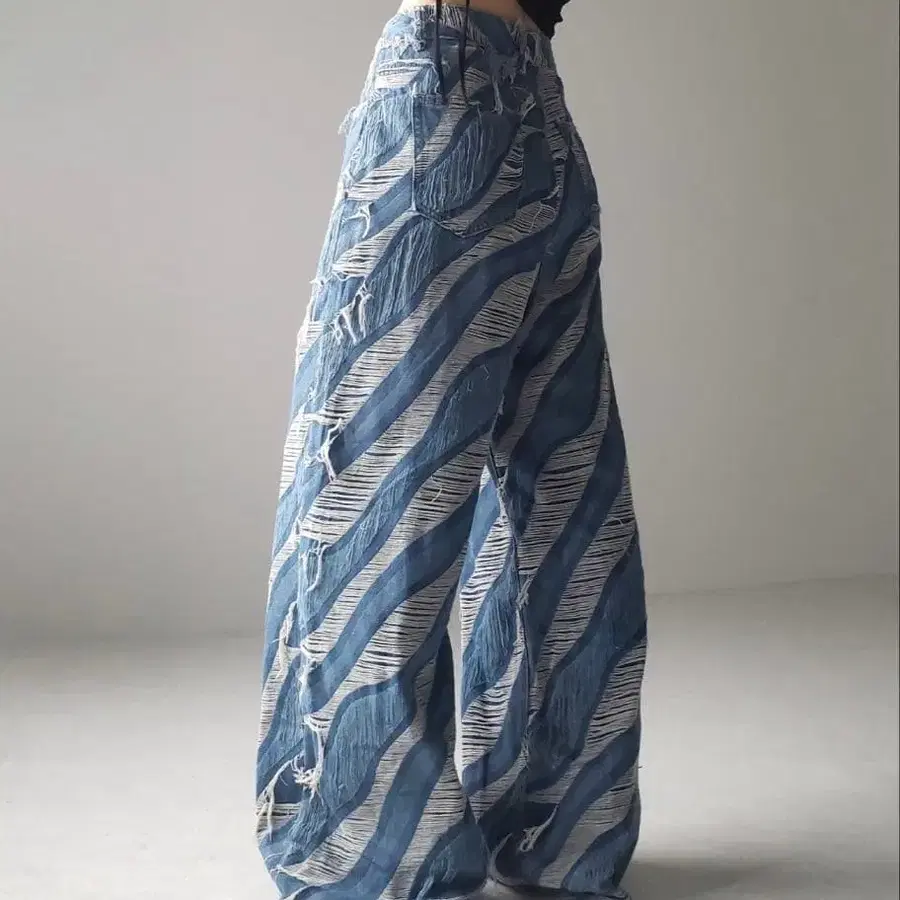 me+em select 바이컬러 컷 프린지 데미지 와이드 데님