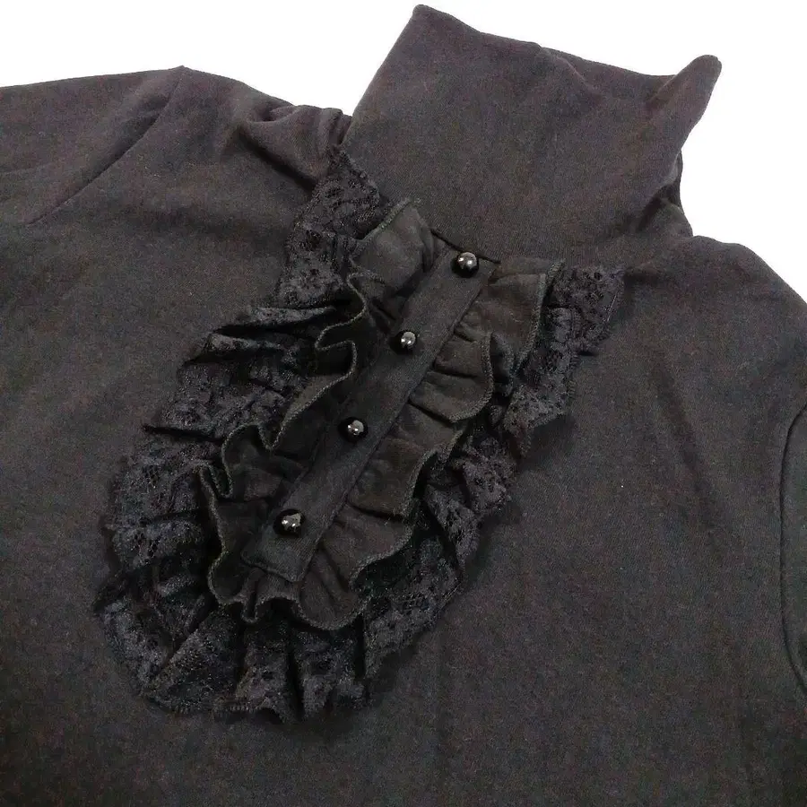 Yi yi mei 블랙 프릴 블랙 긴팔 하이넥 상의