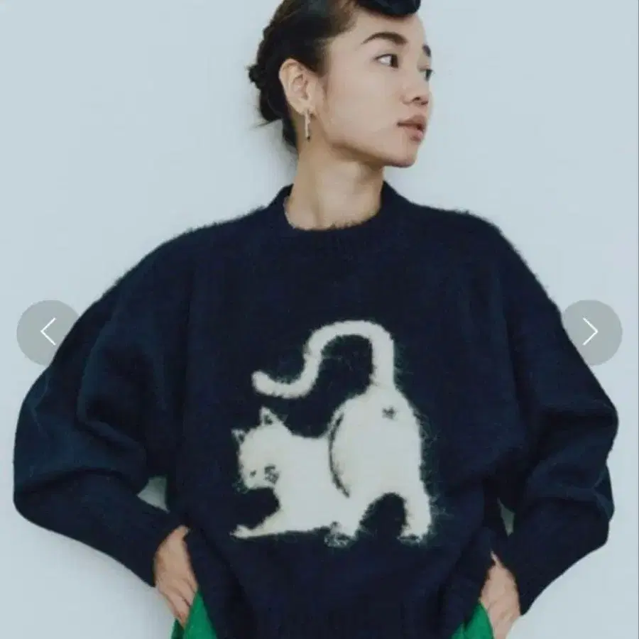 mananasuerte 마냐나스우르테 CAT 모티브 볼륨 슬리브 니트