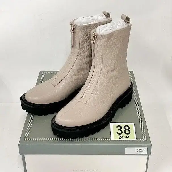 미사용 38/24cm 치아키 카가기리 프론트 지퍼 부츠 7707