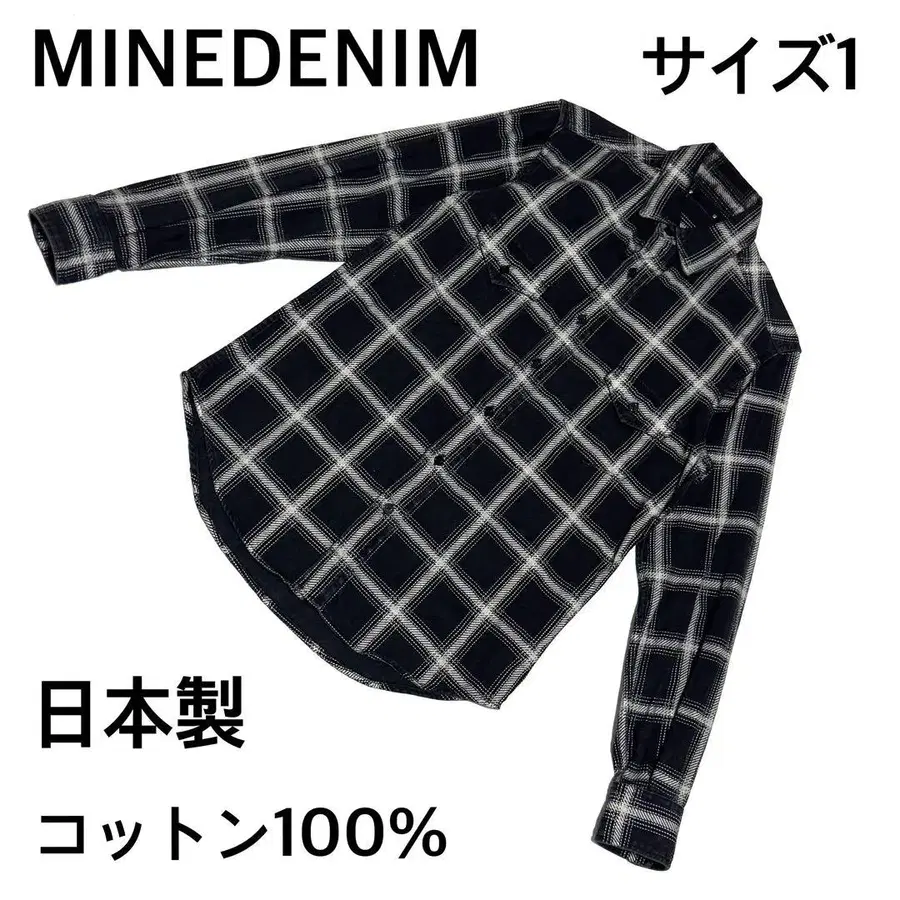 마인 데님 체크 플란넬 셔츠 블랙 일본제 코튼 100% 사이즈 1