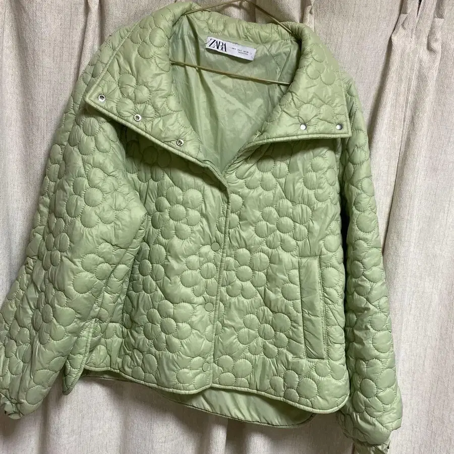 ZARA 연한 녹색 퀼팅 다운 자켓