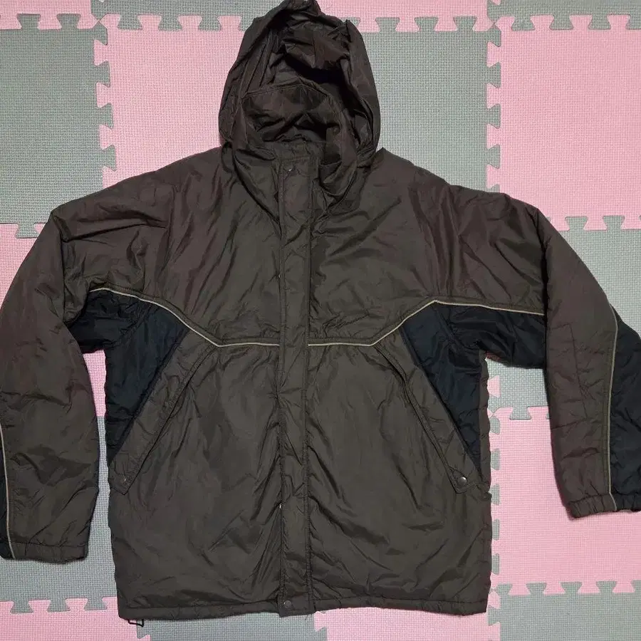 후드 부착 다크 그레이 다운 자켓