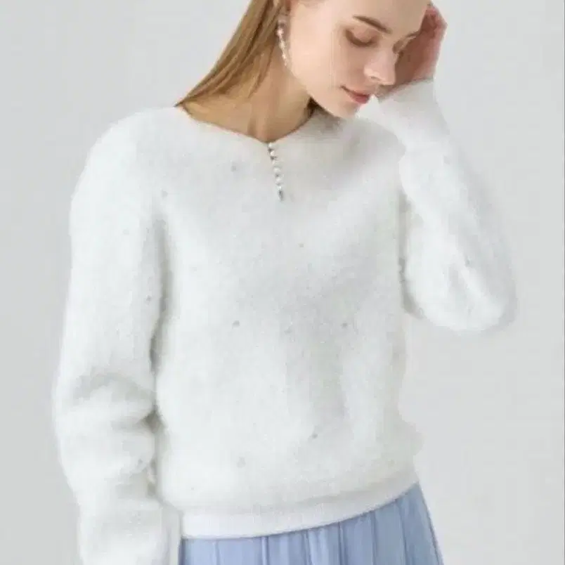 정말 귀여워서 첫눈에 반해 구매했지만, 너무 아껴 입지 못해 판매합니다. 깨끗한 상태입니다. 정가 26,400엔 완판 페더얀을 촘촘하게 짜서 퍼와 같은 질감 속에 라메 실로 자수한 듯 패턴을 표현한 자카드 니트 소재입니다. 복슬복슬 x 반짝이는 뉘앙스가 시즌의 기분을 고조시켜 줍니다. 쫀득한 입체감이 있는 소재는 따뜻함은 물론, 실루엣도 탄탄하게 잡아주어 착용감이 뛰어납니다. 뒷넥라인을 얕은 V넥으로 하여 앞뒤 2WAY로 착용 가능한 풀오버입니다. 약간 두꺼운 소재이지만 목둘레는 깔끔하게 떨어져 무겁게 느껴지지 않습니다. 얼음 결정 패턴으로 연출한 패턴에 맞춰 리브 원단에 섬세하게 실버 라인을 더했습니다. 등에는 작은 펄 비즈를 달았습니다. [ 부속물 ] 없음 [ 안감 ] 없음 [ 비침 ] 없음 [ 여밈 사양 ] 뒷단추 여밈 [ 신축성 ] 있음 [ 케어 방법 ] 클리닝 [ 착용감 원단 두께 ] 약간 두꺼움 [ Holiday Collection 2024 'Sparkle Holiday' ] 반짝임과 빛을 발하는 겨울 세계관을 발레 [ 눈의 여왕 ]에서 영감을 얻어, 다양한 텍스처로 표현한 마음을 설레게 하는 컬렉션