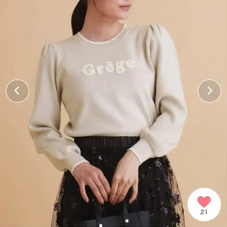베이지 로고 니트, 퍼프 슬리브 디자인으로 세탁기 사용 가능. - 색상: 내추럴 - 디자인: 로고 - 소재: 니트 - 소매 스타일: 퍼프 슬리브 - 세탁 가능: 세탁기 사용 가능 방문해 주셔서 감사합니다. 사이즈 - M