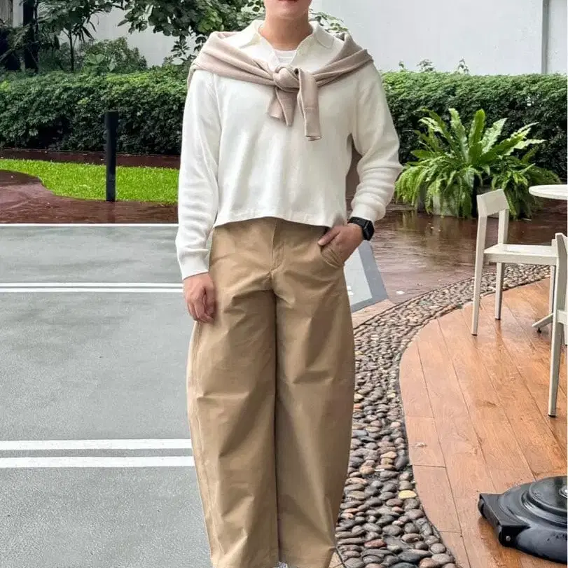 GU 베이지 치노 팬츠 와이드 실루엣