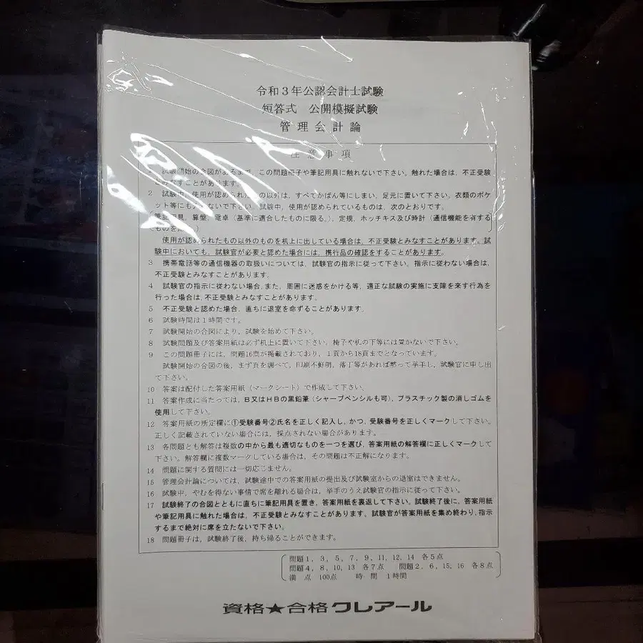 클레어르 공인회계사 시험 단답식 시험 모의고사 2021년과 2022년분입니다. 4과목분 있습니다. 미사용이지만, 시간이 지났기 때문에 약간 노후화되었습니다. 방문해 주셔서 감사합니다.