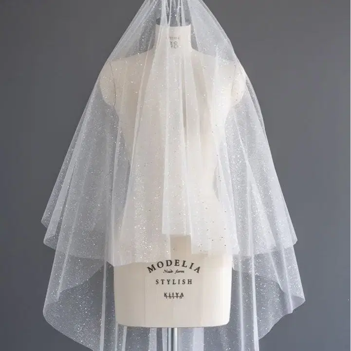 만천의 별처럼 글리터가 반짝이는 웨딩 베일입니다.
