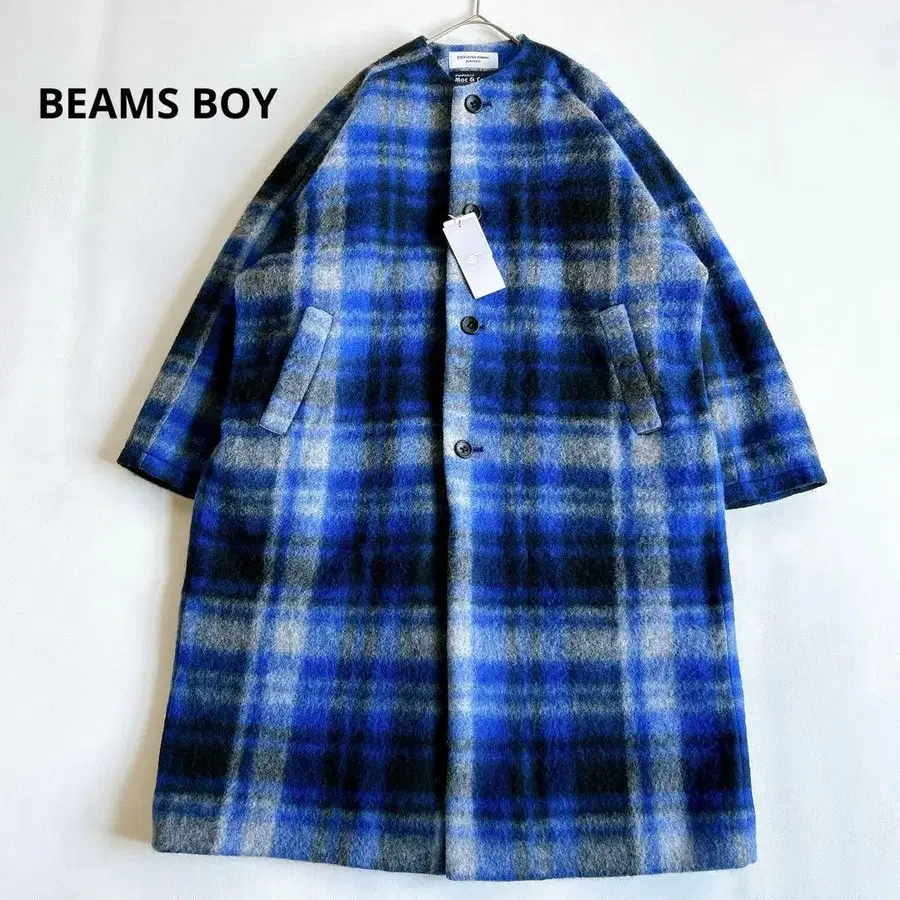 새상품 BEAMS BOY 슬리버 타탄 체크 노카라 코트 22FW
