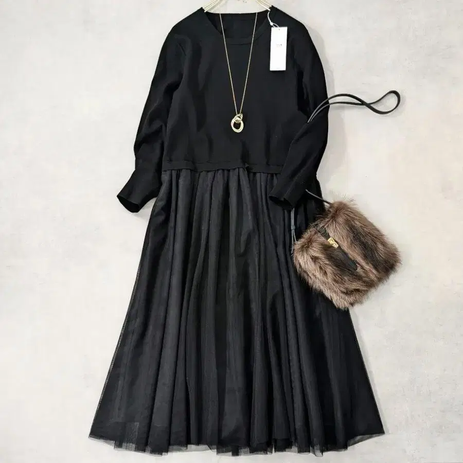 니트와 튤 스커트의 도킹으로, 코디네이트가 필요 없이 고급스럽고 여성스러운 원피스입니다.