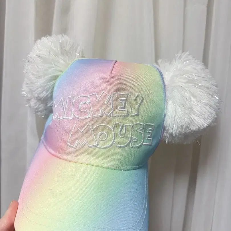 미키마우스 폼폼 포함 캡 레인보우