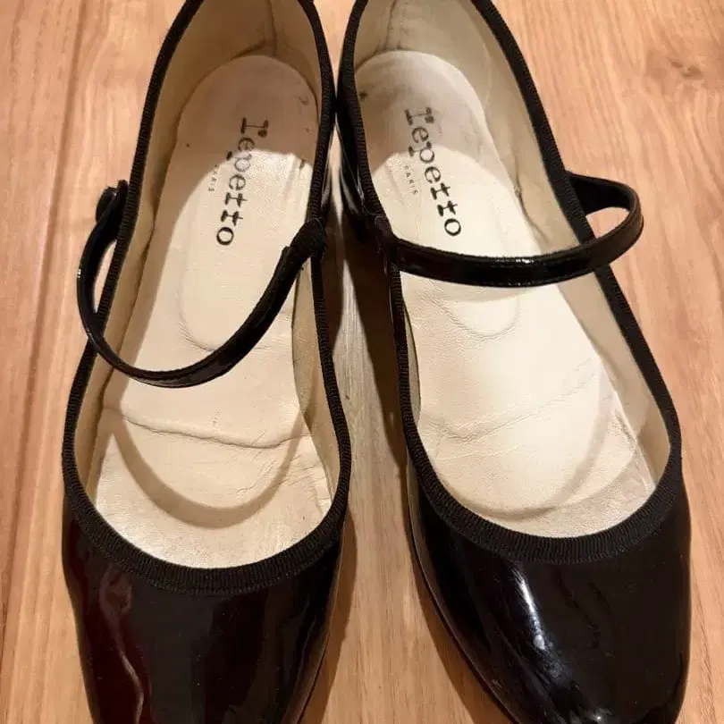 레페토 에나멜 블랙 발레 슈즈 스트랩 포함
