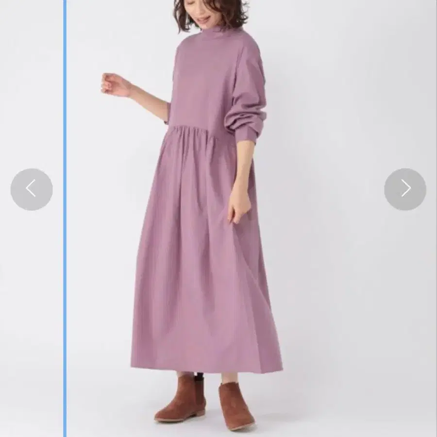 스튜디오 클립 코튼울 비에라 허리 절개 하이넥 원피스