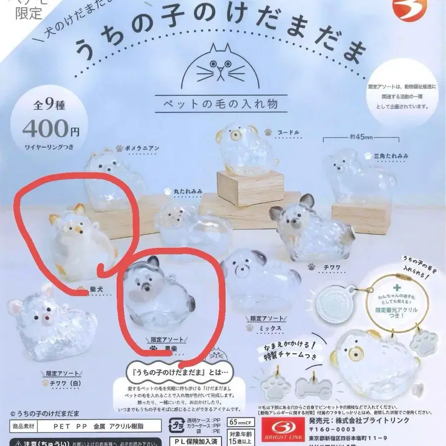 동물 캐릭터 캡슐 토이, 'うちの子のけだま' 시리즈 2개 세트. 시바견 빨검