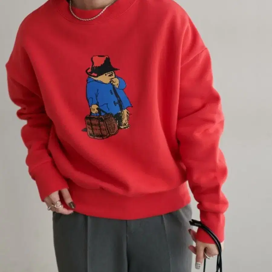 [새상품급] Discoat 패딩턴 콜라보 프린트 맨투맨 레드