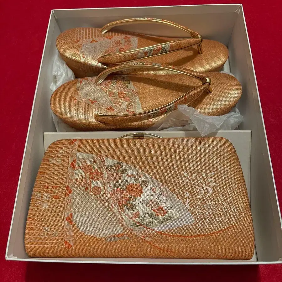 오렌지 핑크 골드 컬러 꽃무늬 자수 일본 의류용 백과 조리 세트