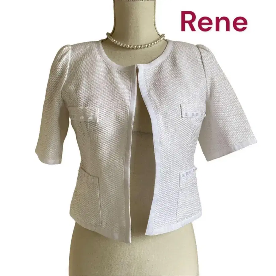 새상품급 르네 청순하고 산뜻한 화이트 썸머 노카라 자켓