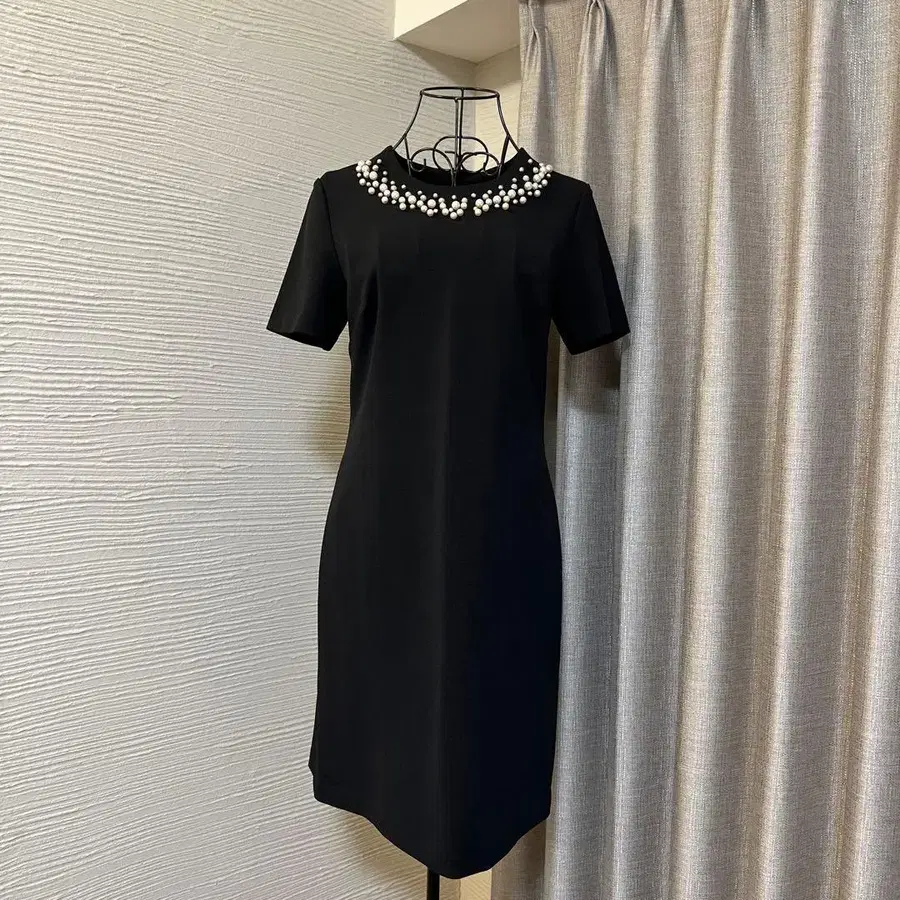목 부분에 펄 장식이 되어 있어 액세서리 없이도 화려한 인상을 줍니다.