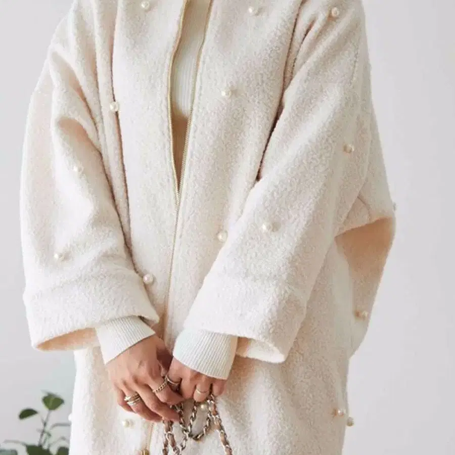 택 포함 새상품 M y u 펄 버튼 코쿤 미들 기장 코트