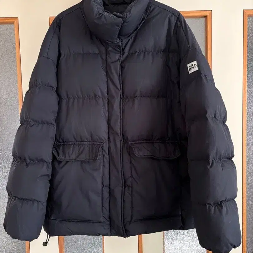 블랙 GAP M 사이즈 다운 자켓, 뛰어난 보온성. - 브랜드: GAP - 색상: 블랙 - 사이즈: M - 디자인: 다운 자켓 - 특징: 밑단 조절 가능 신장 158cm에 딱 맞습니다.