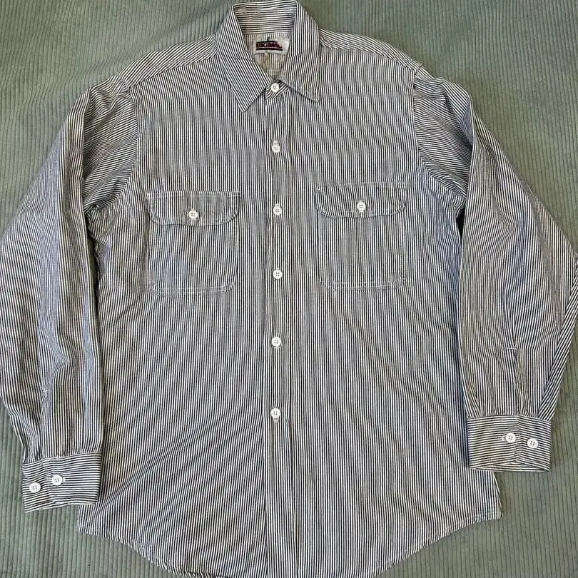 히코리 스트라이프 BIG MAC 워크 셔츠, 프론트 포켓 부착으로 실용적입니다. - 브랜드: BIG MAC - 디자인: 스트라이프 패턴 - 소매 길이: 긴팔 - 포켓: 프론트 포켓 2개 - 버튼: 단추식 방문해 주셔서 감사합니다. 사이즈 - M