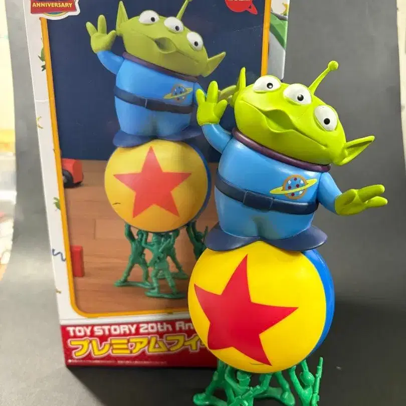 토이 스토리 20주년 에이리언 피규어, 별 모양 공에 올라탄 디자인이 특징입니다.