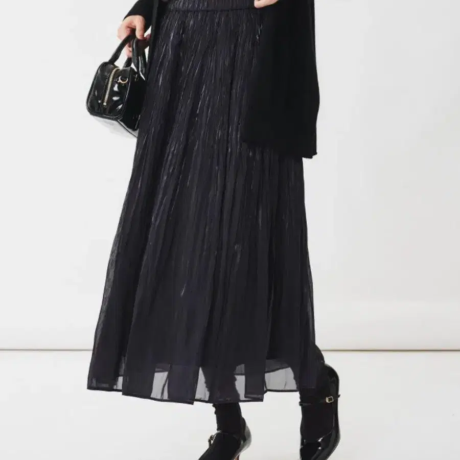 UNTITLED 워셔블 시어 플리츠 스커트 블랙 빅 사이즈