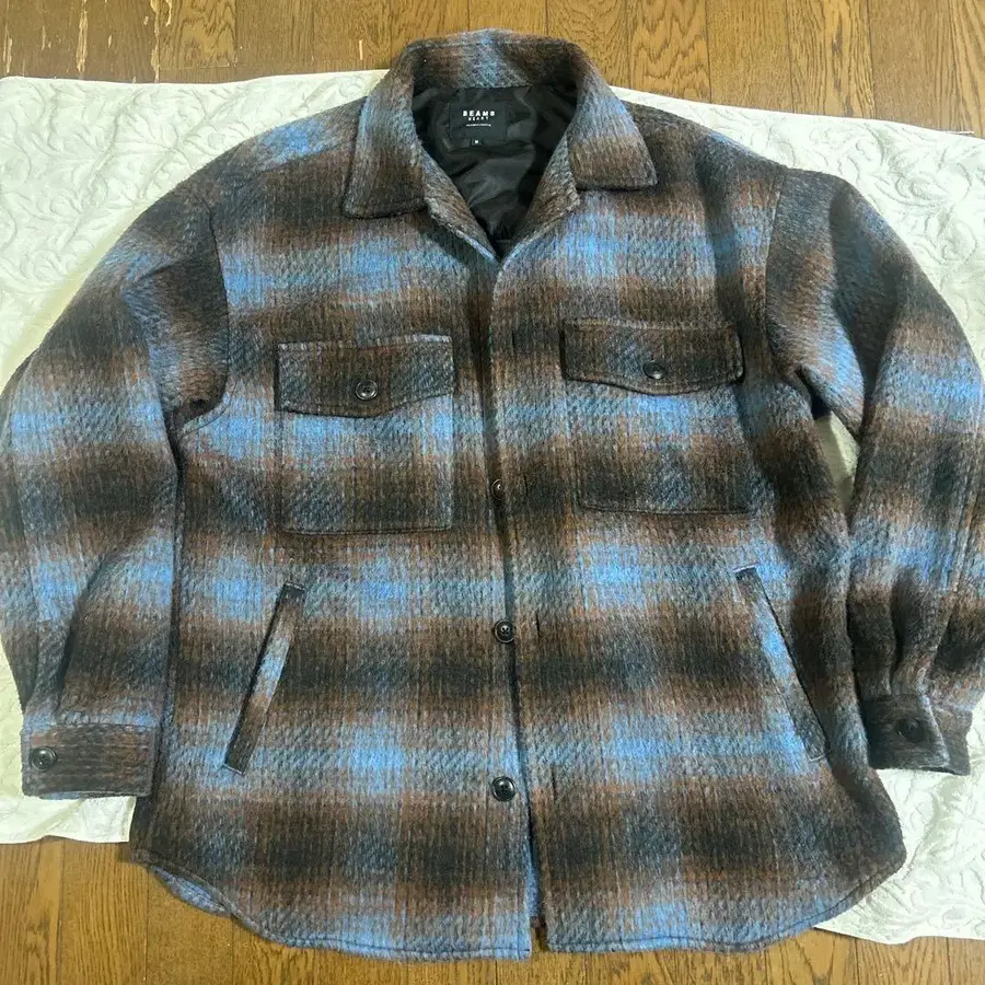CPO 자켓 셔츠 자켓 모헤어 울 박스형 체크 좋은 배색