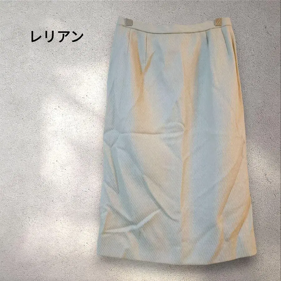 Leilian 레리안 크림색 스트라이프 타이트 스커트 일본제 울