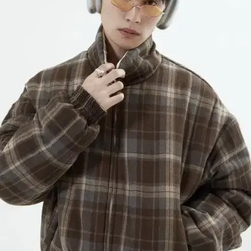 체크 무늬와 베이직 컬러의 리버서블 아우터.