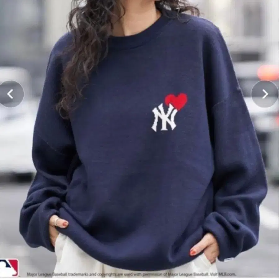 MLB 별주 하트 로고 자카드 니트